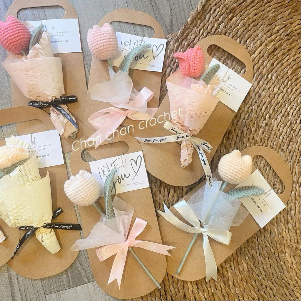 Hoa Tulip Len (Crochet) TL06 thủ công (Crochet) tinh xảo, mềm mại, bền đẹp vĩnh cửu. Hoa Len Handmade trang trí nhà/văn phòng. Món Quà Tặng Handmade ý nghĩa.